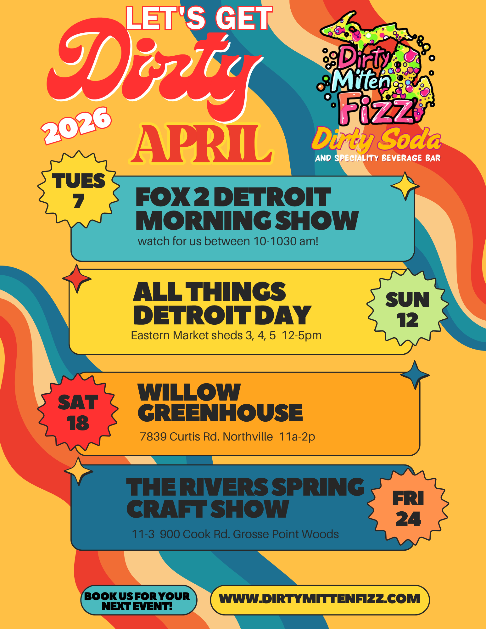Dirty Mitten Fizz will come to your event/business and provide a 2 hour service featuring our full dirty soda menu. Your guests/customers will self pay.